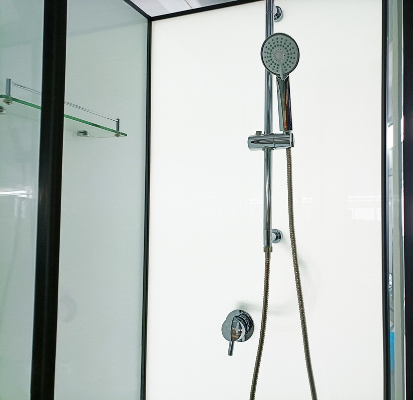 A Bela2 kabin tartalmaz egy többfunkciós, sínes kézi zuhanyt, amely lehetővé teszi a zuhanyzás testre szabását. A krómozott zuhanyfej modern megjelenést és tartósságot biztosít, miközben a sínes kialakítás kényelmes használatot tesz lehetővé.