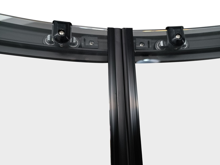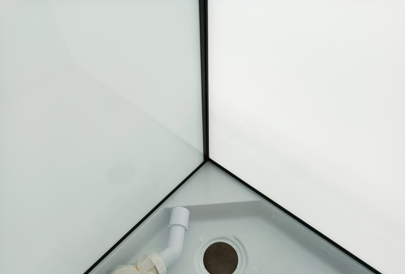 A kabin megjelenését a fekete színű alumínium keret határozza meg, amely elegáns és modern stílust képvisel. A 4 mm-es biztonsági üvegből készült frontüvegek nemcsak esztétikusak, hanem hosszú távon is megbízhatók. A hátfalak 4 mm-es fehér biztonsági üvege friss, tiszta hatást kölcsönöz a kabin belső terének, miközben könnyedén karbantarthatók.