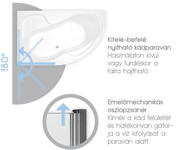 Termékadatok:- kádparaván- méret: 75x150 cm- 6mm átlátszó biztonsági üveg- univerzális kivitel (a kád jobb és bal oldalára is felszerelhető)- emelőmechanikás oszlopzsanér (kíméli a kád felületét és hatékonyan gátolja a víz kifolyását a paraván alatt)- kifelé-befelé nyitható kádparaván - használaton kívül vagy fürdéskor teljesen a falra hajtható- 2 év garancia- lengyel termék