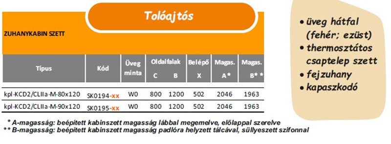 A kpl-KCD2/CLII-M 120x90 cm-es zuhanykabin tökéletes választás mindazok számára, akik modern, praktikus és tartós megoldást keresnek fürdőszobájukba. Kényelem, stílus és funkcionalitás egy helyen – válassza a kpl-KCD2/CLII-M zuhanykabint, és élvezze a tökéletes zuhanyzási élményt minden nap!