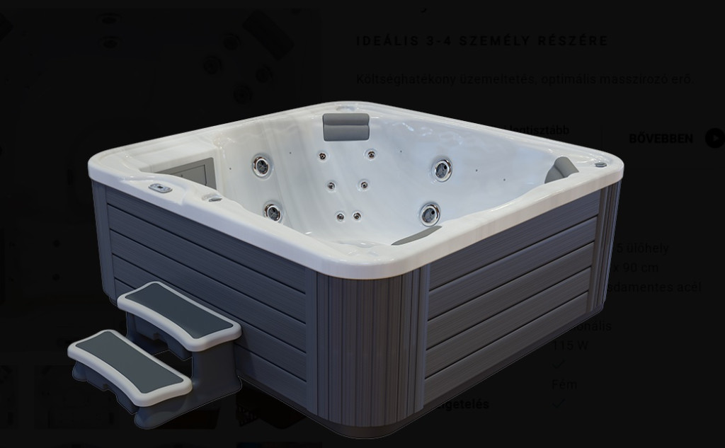 Termékadatok:- méret: 206x197x90 cm- férőhely: 1 fekvő és 5 ülőhely- fúvókaszám 33 db rozsdamentes acél- masszázspumpák száma 1 db- 1 db keringető szivattyú 115 W- színterápia- fém tartószerkezet- „4 évszak” hőszigetelés- Thermowood fa oldalburkolat: Standard- fagyásvédelem- áramigény: 1x32A 230V/ 3x16A 400V- űrtartalom 1200 L- szűrőméret: 7,4 m2- tömeg: 250 kg- belső acryl medencetest színei: white, cameo, sterling silver, tuscan sun, storm clouds- garancia: 15 év a vázszerkezetre 5 év a medencehéjra 3 év az elektronikus alkatrészekre 3 év a csővezetékekre- magyar gyártmányKapcsolódó termék:- beüzemelés + 110000 Ft- Thermotető barna + 215000 Ft- Thermotető szürke + 235000 Ft- Thermowood fa lépcső + 98000 Ft- MicroSilk oxigénterápia + 550000 Ft- Okostelefonos kiegészítő vezérlés (Wifi szükséges) + 139000 Ft- UV-C vízfertőtlenítő + 129000 Ft- Hőcserélőre való előkészítés + 99000 Ft- +8 levegő fúvóka + 219000 Ft- aromaterápia + 75000 Ft- Thermotető emelő + 85000 Ft- medence korlát + 65000 Ft- UV álló műanyag lépcső + 7500 Ft-tólKérem rendeléskor az ' Egyéb közlemény ' részben feltüntetni!
