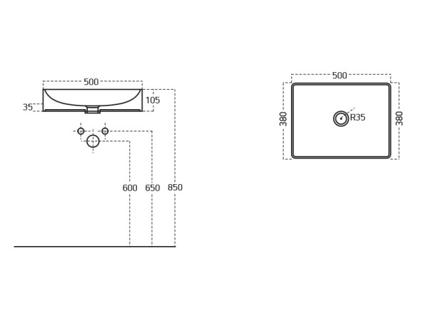 Top Counter 50x38 cm mosdó méretei