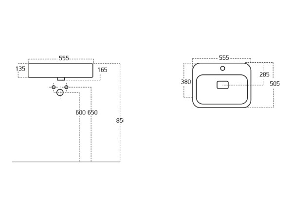 Top Counter 55x50 cm mosdó méretei