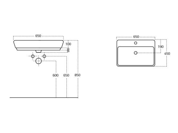 Top Counter 65x45 cm mosdó méretei