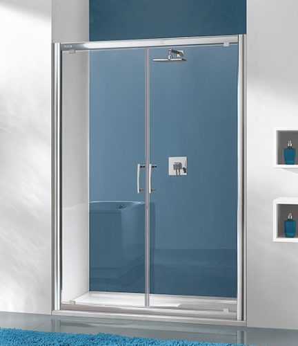 Az átlátszó üveg vizuálisan tágítja a teret, a fehér vagy króm profil pedig modern, letisztult megjelenést kölcsönöz. A két nyílóajtó kialakítás különösen előnyös kisebb fürdőszobákban, ahol a praktikum és a térkihasználás kiemelten fontos.