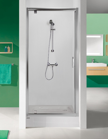 Az átlátszó üveg optikailag növeli a fürdőszoba terét, míg a fehér vagy ezüst profil modern, letisztult stílust kölcsönöz. A nyílóajtó kialakítás különösen előnyös kisebb fürdőszobákban, ahol a praktikusság és a helytakarékosság kiemelten fontos.