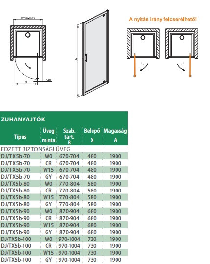 A DJ/TX5b 70 univerzális ajtónyitással rendelkezik, így könnyen illeszkedik a fürdőszoba elrendezéséhez. A Glass Protect vízlepergető üvegfelület gyors és egyszerű tisztítást tesz lehetővé, így a karbantartás minimális időt igényel. A stabil profil garantálja az ajtó megbízható és biztonságos működését.