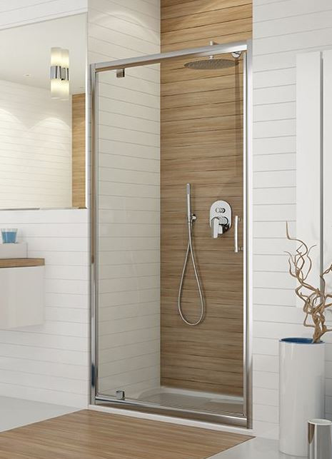 Az átlátszó üveg optikailag tágítja a teret, míg a fehér profil modern, letisztult stílust kölcsönöz. A nyílóajtó kialakítás különösen előnyös kisebb fürdőszobákban, ahol a praktikusság és a helytakarékosság kiemelten fontos.
