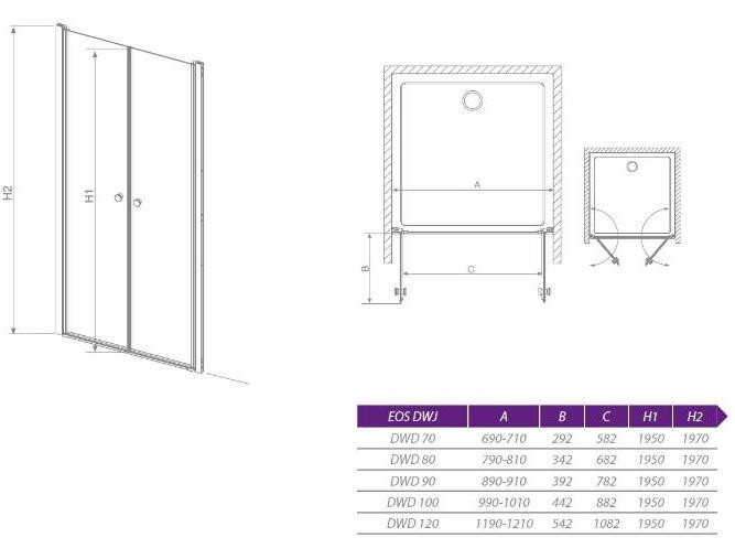 Az EOS DWD 100 nyíló zuhanyajtó tartós, könnyen tisztítható, kényelmes és esztétikus megoldás, amely tökéletes választás egy modern, jól használható fürdőszobába. Az AquaTrade webáruházban gyorsan és kényelmesen beszerezheti ezt a megbízható zuhanyajtót, amely hosszú távon növeli fürdőszobája komfortját.