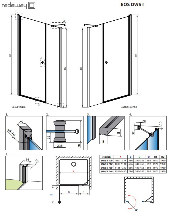 Az EOS DWS 110 nyíló zuhanyajtó ideális választás, ha a kényelem, tartósság és esztétika egyszerre számít a fürdőszobában. 110 cm-es szélességével tágas belépést biztosít, miközben kompakt kialakítása révén helytakarékos megoldásként szolgál. Ez a minőségi zuhanyajtó modern stílust visz a fürdőbe, és harmonikusan illeszkedik különböző fürdőszobai enteriőrökbe.