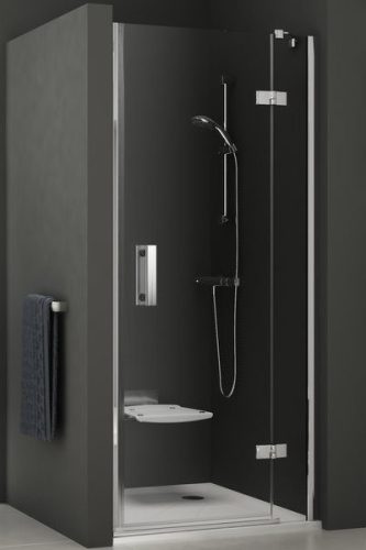 Az átlátszó üveg vizuálisan tágítja a teret, minimalista kialakítása eleganciát kölcsönöz a fürdőszobának. A kétrészes nyílóajtó kompakt kialakítása révén kisebb helyiségekben is praktikus és stílusos választás.