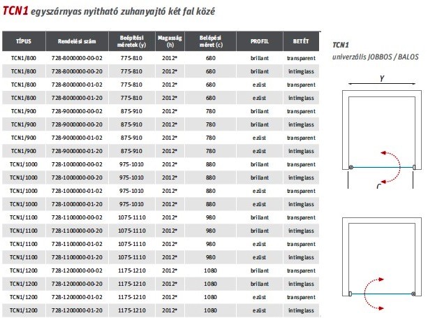 A TCN1 80 nyílóajtós zuhanyajtó ideális választás, ha egy stílusos, megbízható és hosszú távon használható fürdőszobai megoldást keres. Letisztult dizájnja harmonikusan illeszkedik modern és klasszikus enteriőrökbe egyaránt, miközben stabil alapot biztosít egy minőségi zuhanykabin kialakításához. A 80 cm-es szélesség kényelmes belépést biztosít, így minden zuhanyzás valódi komfortot nyújt.