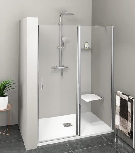 A nyíló rendszer teljes hozzáférést ad a zuhanytérhez, így a be- és kilépés akadálymentes és kényelmes. A sima üvegfelületek könnyen tisztán tarthatók, kevesebb lerakódással, ami megkönnyíti a napi karbantartást és hosszú távon is megőrzi az esztétikus megjelenést.