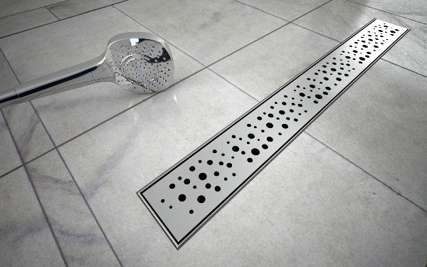 RRF6-900 rozsdamentes zuhanyfolyóka ráccsal, 900 mm beépítve
