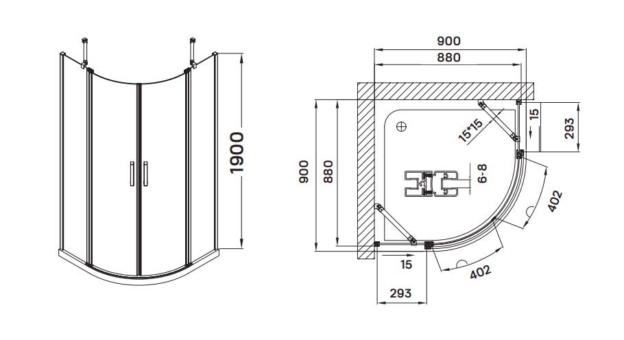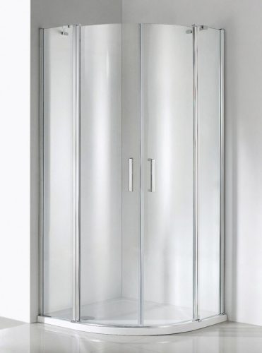 Termékadatok:- íves zuhanykabin- méret: 90x90x190 cm- 2 nyílóajtó- pivot rendszerű zuhanyajtó- 6 mm vastag átlátszó biztonsági üveg Easy Clean bevonattal- polírozott alumínium profil- krómozott acél fogantyúk és tartókonzol
