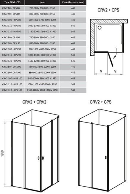Termékadatok: - CRV2 zuhanyajtó és CPS fix oldalfal kombinációja- méret: 108-110x78-80x195 cm- keret színe: fehér vagy fényes alumínium- 6 mm-es transparent edzett biztonsági üvegből- emelőmechanizmus- automatikus záródás- AntiCalc bevonat az üvegen- cseh gyártmány