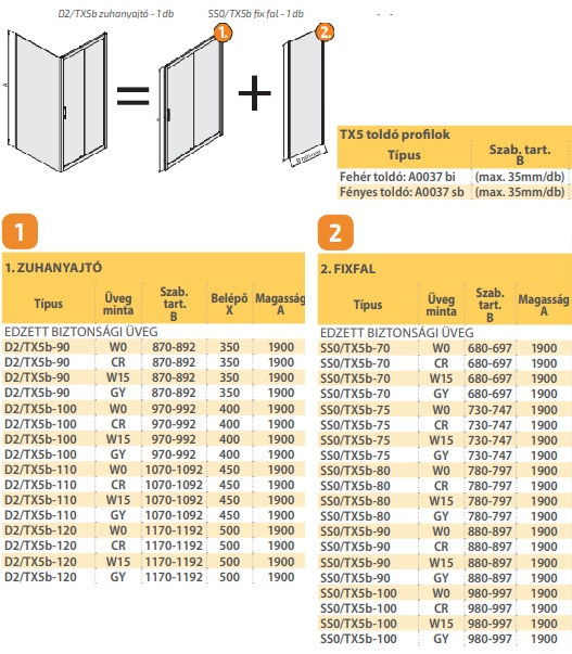 Termékadatok:- tolóajtós zuhanyajtó (120) + fix fal (75)- méret: 120x75x190 cm- 5 mm átlátszó biztonsági üveg- csapágyazott görgők- fehér profil- univerzális ajtónyitás- lengyel gyártmány