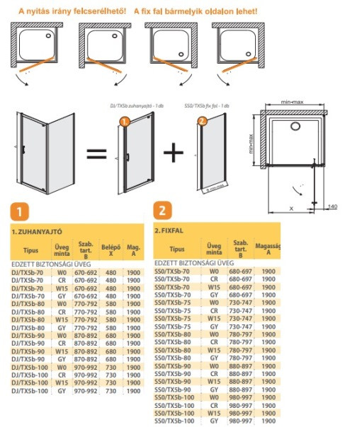 Termékadatok:- nyíló ajtós zuhanyajtó + fix fal- méret: 70x70x190 cm- 5 mm átlátszó biztonsági üveg- fehér profil- univerzális ajtónyitás- lengyel gyártmány