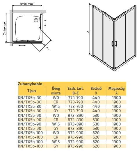 A KN TX5 szögletes zuhanykabin kiváló választás, ha tartós, esztétikus és praktikus zuhanyajtó rendszert keres fürdőszobájába. Kompakt méretének köszönhetően helytakarékos megoldás, miközben magas minőséget és kényelmet kínál. A stabil szerkezet, az edzett üveg és a modern kialakítás együtt biztosítják a hosszú távú megbízhatóságot.