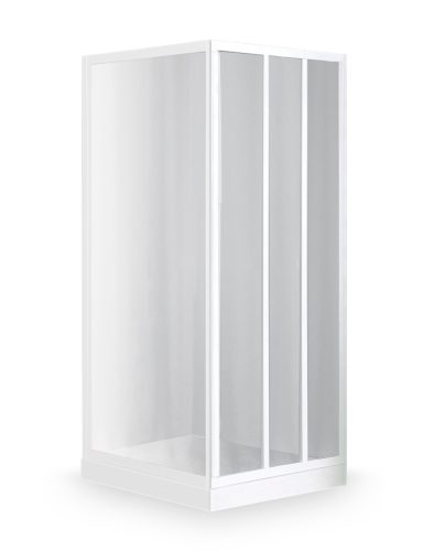 Termékadatok: - háromrészes tolóajtó + fixfal- csúszkás kivitel - plexi (műanyag) betét- méret: 76-82 (tolóajtó) x 74-80 (fixfal) x 180 cm- profil: fehér- zuhanytálca nélkül- cseh gyártmány - 1+1 év garancia