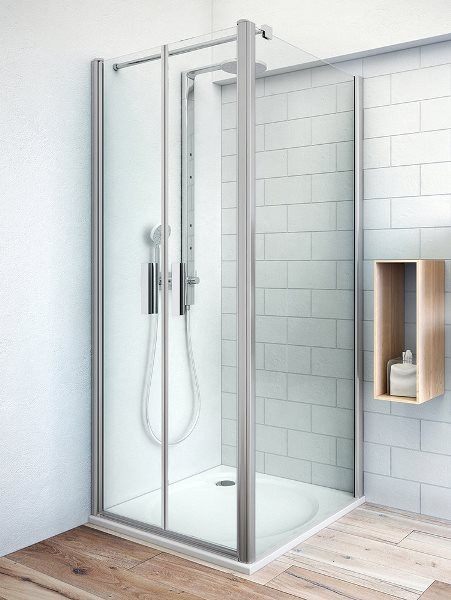 Termékadatok:- kétszárnyú nyíló ajtós zuhanyajtó + fix fal- méret: 98-102x77,5-80x201,2 cm- betét: 6 mm vastagságú átlátszó biztonsági üveg- új formatervezett kapaszkodó- kifelé-befelé nyitás- nyitáskor az ajtó felfelé is elmozdul- akadálymentes belépés lehetősége- Rolshield felületkezelés- cseh gyártmány- 2+1 év garancia
