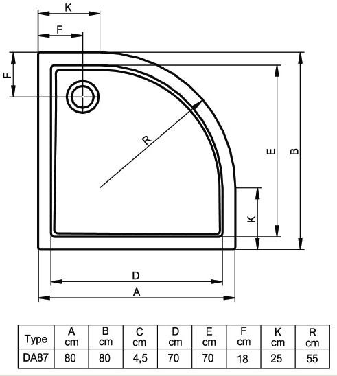 Termékadatok: - íves zuhanytálca- anyaga: LUCITE 4 mm-es akrillemez, üvegszál erősítéssel- mérete: 80x80x4,5 cm- R550- 10 év garancia- holland gyártmányKapcsolódó termék:- RZS05/90 zuhanytálca szifon + 9800 Ft- Riho zuhanytálca szifon + 15400 Ft-tólMegrendeléskor kérem az ' Egyéb közlemény' részben feltüntetni!