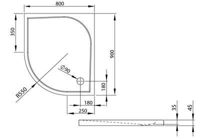 Termékadatok: - íves zuhanytálca- anyaga: akril- mérete: 90x80x3,5 cm- sugár: R550- szifonnal- 2+1 év garancia- lengyel gyártmányAjánlott kiegészítők:- TURBOFLOW gyors vízlefolyású szifon + 14400 FtRendeléskor kérem az ' Egyéb közlemény'-ben feltüntetni!