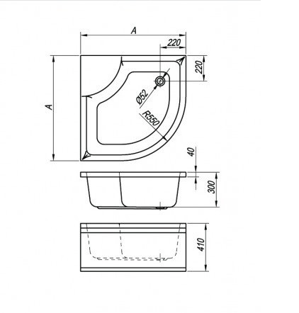 Termékadatok: - íves zuhanytálca- anyaga:akril- magasított zuhanytálca mérete: 90x90x41 (30) cm- szlovén gyártmány