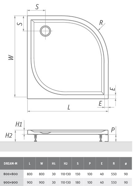 Termékadatok:- íves zuhanytálca- anyaga: öntött márvány- mérete: 90x90x3 cm- sugár: R550- 5 db állítható láb - cseh gyártmány- 1+1 év garanciaKapcsolódó termék:- előlap 90 cm + 37000 FtRendeléskor kérem az ' Egyéb közlemény'-ben feltüntetni!