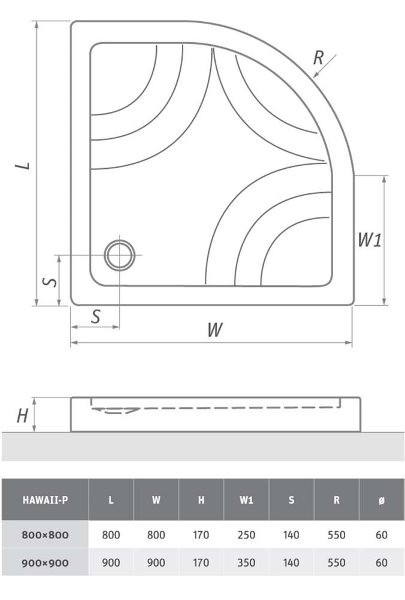 Hawaii-P 80 íves zuhanytálca méretei