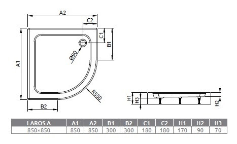 Termékadatok: - íves zuhanytálca- anyaga: akril- mérete: 85x85x17x7 cm- sugár: R550- szifonnal, lábbal- előlappal- 2 +1 év garancia- lengyel gyártmány