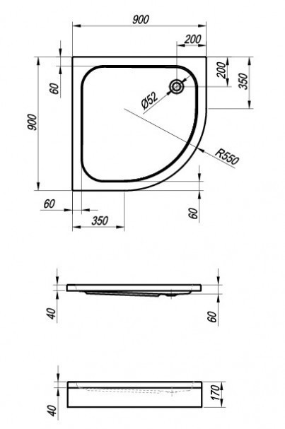 Termékadatok: - íves zuhanytálca- anyaga:akril- zuhanytálca mérete: 90x90x6 cm- R550- szlovén gyártmány