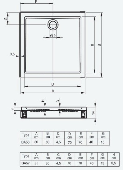 Termékadatok: - szögletes zuhanytálca- anyaga: LUCITE 4 mm-es akrillemez, üvegszál erősítéssel- mérete: 80x80x4,5 cm- lábbal- előlappal (magassága 14 cm)- 10 év garancia- holland gyártmányKapcsolódó termék:- RZS05/90 zuhanytálca szifon + 9800 Ft- Riho zuhanytálca szifon + 15400 Ft-tólMegrendeléskor kérem az ' Egyéb közlemény' részben feltüntetni!