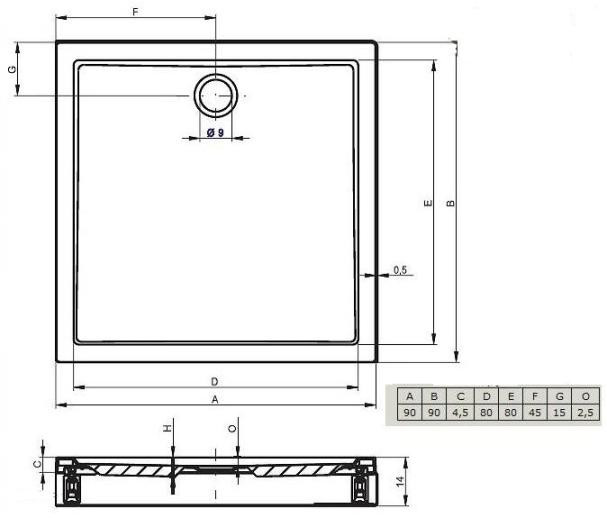 Termékadatok: - szögletes zuhanytálca- anyaga: LUCITE 4 mm-es akrillemez, üvegszál erősítéssel- mérete: 90x90x4,5 cm- lábbal- előlappal (magassága 14 cm)- 10 év garancia- holland gyártmányKapcsolódó termék:- RZS05/90 zuhanytálca szifon + 9800 Ft- Riho zuhanytálca szifon + 15400 Ft-tólMegrendeléskor kérem az ' Egyéb közlemény' részben feltüntetni!